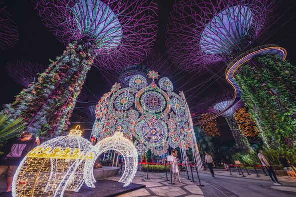 After breakfast, take a bus to visit [Citizen District], [Singapore Cricket Club], [Parliament Building] and [National Gallery of Singapore]. Enjoy the beautiful scenery of Marina Bay at [Merlion Park], then visit Thian Hock Keng Temple, one of the oldest Buddhist and Taoist temples in Singapore, and then go to [Chinatown] and [Little India]. Finally, go to [Gardens by the Bay] - Christmas Wonderland, a special Christmas project, to experience the full Christmas joy - Santa Claus, Christmas markets, light shows and various entertainment activities. Take the evening flight to Kuala Lumpur. Upon arrival, a dedicated person will hold a sign at the exit to pick you up and take you to the hotel.